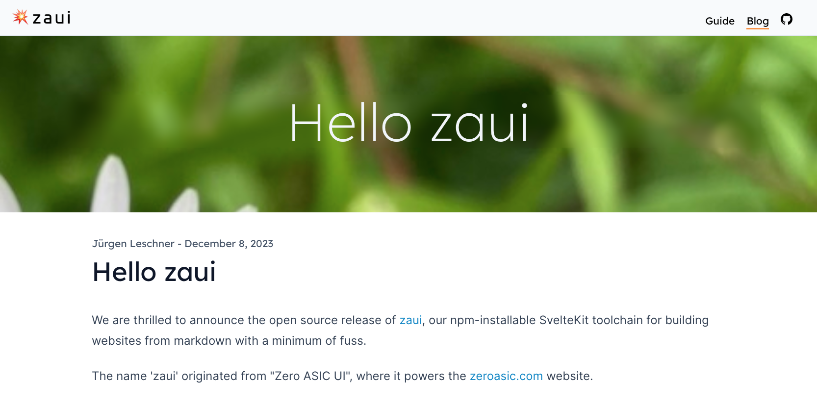 We are pleased to announce the open source release of [zaui](https://github.com/zeroasiccorp/zaui), our npm-installable SvelteKit toolchain for building websites from markdown.